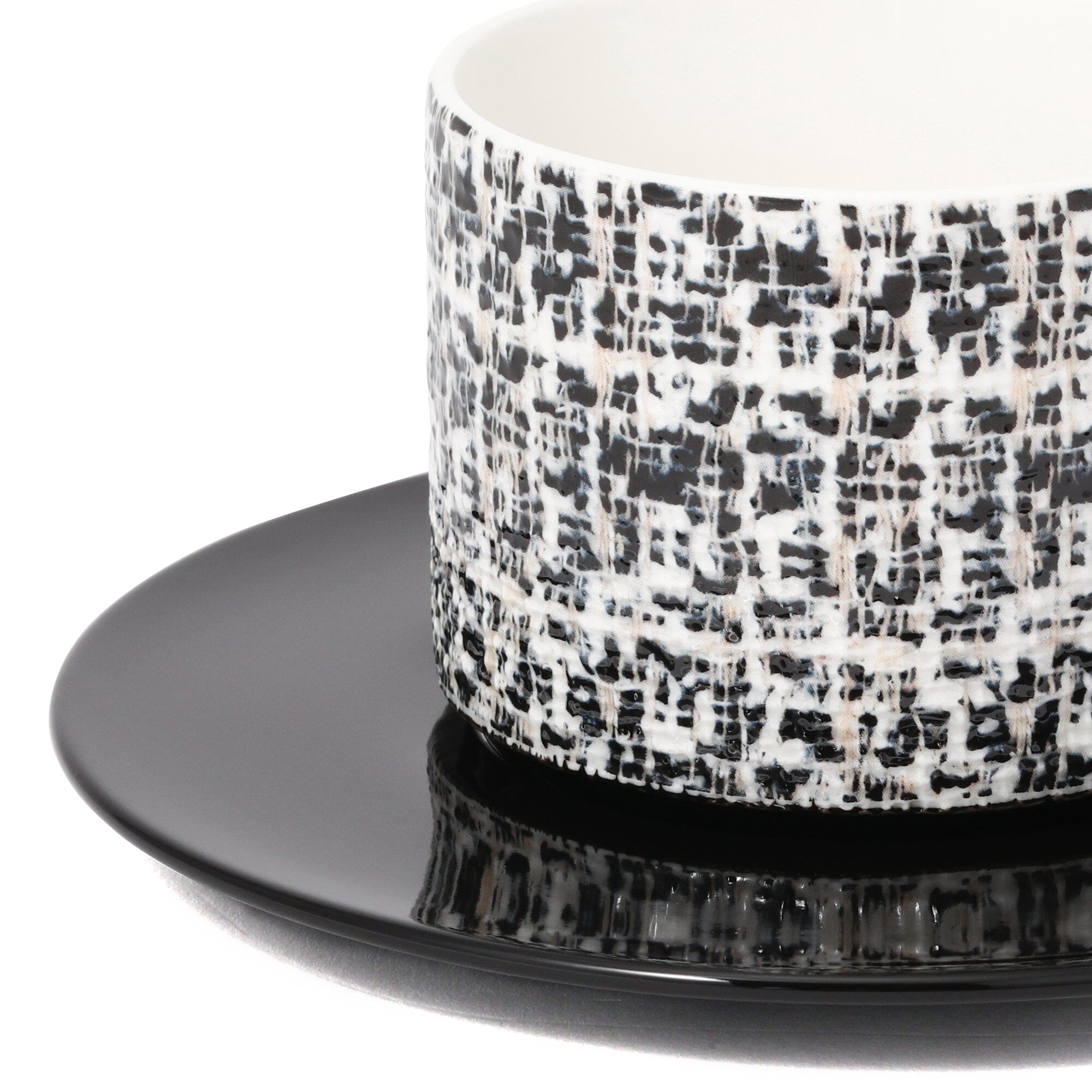A tweed patterned ceramic cup and saucer that will make you feel like you are spending time at your dream cafe while staying at home.The surface of the cup has an uneven texture that gives it the texture of tweed.